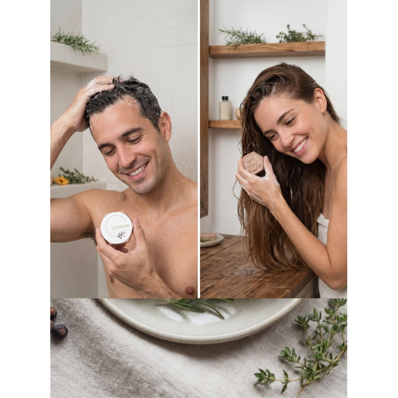 Dile adiós a la caspa. Este champú sólido con neem, árbol de té, limón, arcilla rosa, actúa contra hongos y resequedad, dejando tu cabello limpio, fresco y saludable